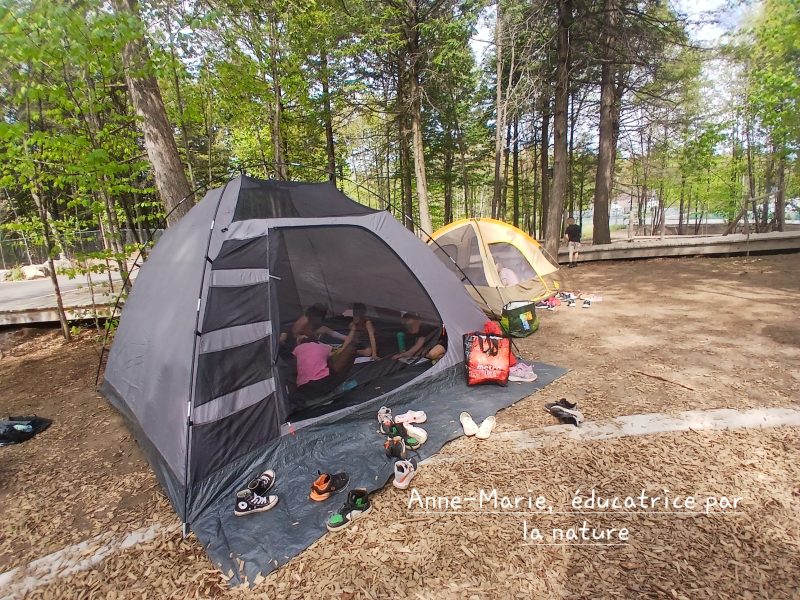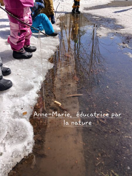J'ai combiné l'approche de l'éducation par la nature avec l'approche multichoix véhiculée par le Centre de services scolaire en service de garde. *Les propositions sont axées sur le processus et non le résultat et sont adaptées pour tous types de cours d'école ! Je privilégie la pédagogie émergente et les activités-projets: Construction d'abris avec les bâches et apprentissage des noeuds, moments de pleine conscience pour contrer l'anxiété, rituels des saisons, utilisation d'outils, démonter des appareils électroniques, feux extérieurs dans la cour avec gestion des risques, jeux libres en forêt avec groupe multiâges, activité-projet partout dans l'école sur les insectes en collaboration avec le comité environnement des enseignants, ateliers de partage sur le savoir-faire des élèves, implication des parents et de la communauté pour rechercher du matériel libre et polyvalent, identification des végétaux qui nous entourent, création d'une clef d'identification pour les traces sur la neige, utilisation des éléments (eau, air, feu, terre) et des sens pour susciter la curiosité, atelier sur la boussole et comment se repérer dans notre environnement, création de petits esprits de la forêt (argile sur tronc d'arbre), création d'un jeu de curling sur glace adapté pour la cour d'école, pêcher dans les mares d'eau, jouer avec nos ombres et le soleil, fabriquer des minis parachutes et les tester avec le vent, démystifier les contes et légendes du Québec, peindre avec de la boue, monter des tentes...Et plus encore!